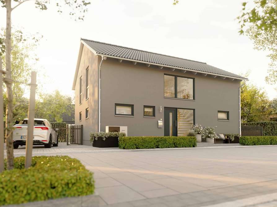 Das Landhaus 142 Modern in der Variante Elegance verbindet klassische Landhausarchitektur mit moderner Großzügigkeit. Große Fensterflächen lassen viel Tageslicht ins Haus und schaffen eine helle Wohnatmosphäre. Der weitläufige Wohn und Essbereich bildet das Herz des Hauses und bietet viel Platz für gemeinsame Zeit mit Familie und Gästen.